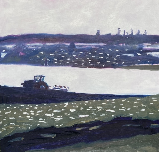 Breaking The Ice, Christmas Eve is a painting completed 2 years ago after a very long cold dog walk.