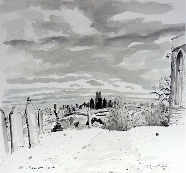 Drawn sitting in my car by Polstead Church on a cold November day.